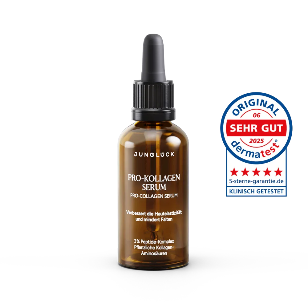 Mit wissenschaftlich belegter Wirksamkeit und unter strengsten Qualitätsstandards in Deutschland hergestellt, setzt JUNGLÜCK Pro-Kollagen Serum neue Maßstäbe für effektive Schönheit – schneller, wirksamer und ehrlicher als herkömmliche Kollagenprodukte.