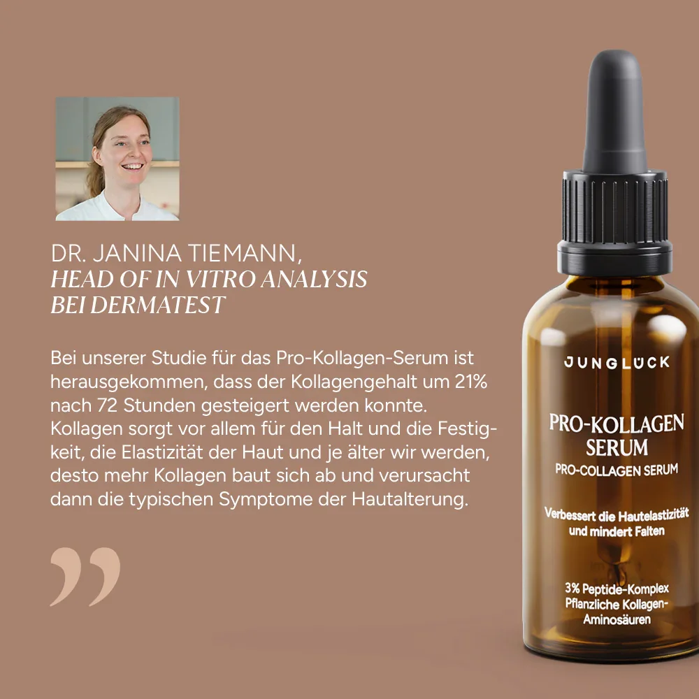 DURCHBRUCH: JUNGLÜCK Pro-Kollagen Serum mit MATRIXYL® 3000 GLYX aktiviert die körpereigene Kollagenproduktion und reduziert Falten um bis zu 47% in nur 12 Wochen* (unabhängige Dermatest-Studie)