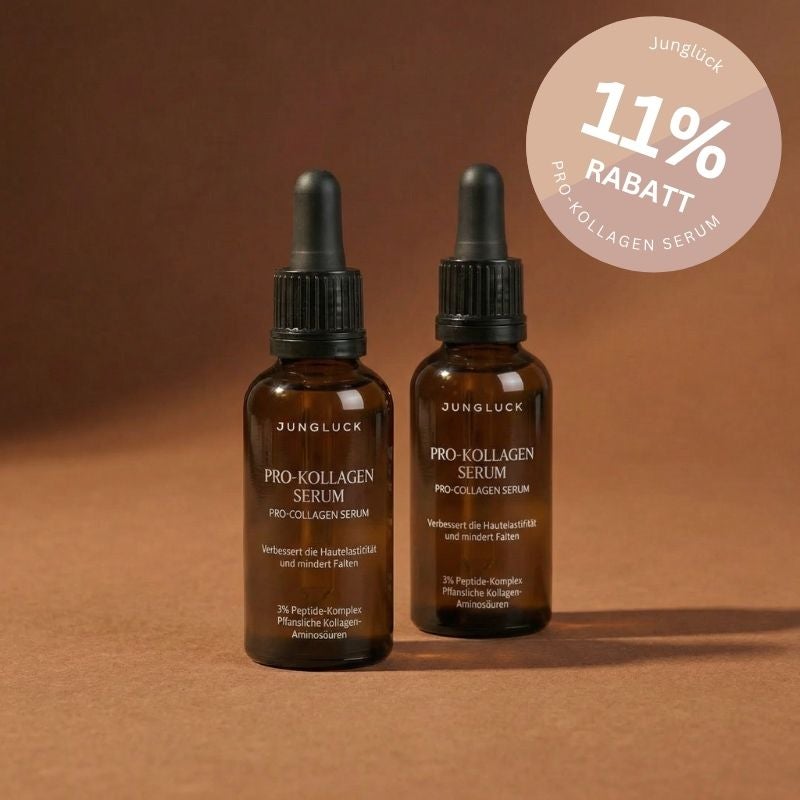 Dies ist ein exklusives Leserangebot, das nur für wenige Tage gilt. JUNGLÜCK produziert in kleinen Chargen in Deutschland, um höchste Qualitätsstandards zu garantieren. Sobald die Stückzahl vergriffen ist, endet das Angebot. Du kannst dir heute noch das Pro-Kollagen Serum sichern und es für volle 30 Tage risikofrei zuhause testen.