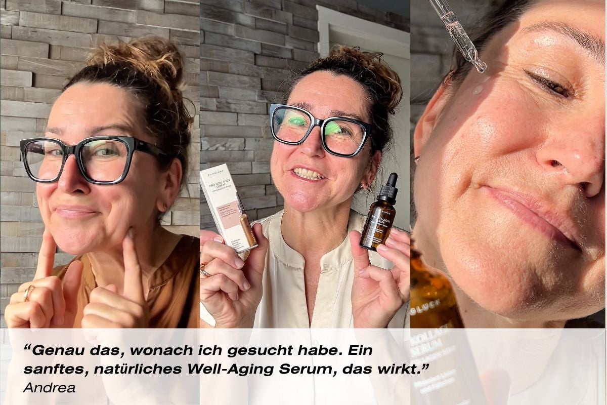 Auch Anwenderinnen von JUNGLÜCK Pro-Kollagen Serum bestätigen diese Vorteile: